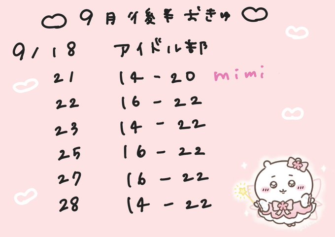 めるこ🦕Mimi@sas_meruco·🎧 9月後半 御給仕予定 🎧 18日 アイドル部(Zephyr Hall) 🎤19:25-19:40 📸 20:15-22:50 27.28日 十五夜EV 🎑(うさみみ) よろしくお願いしますっ!♡3219670