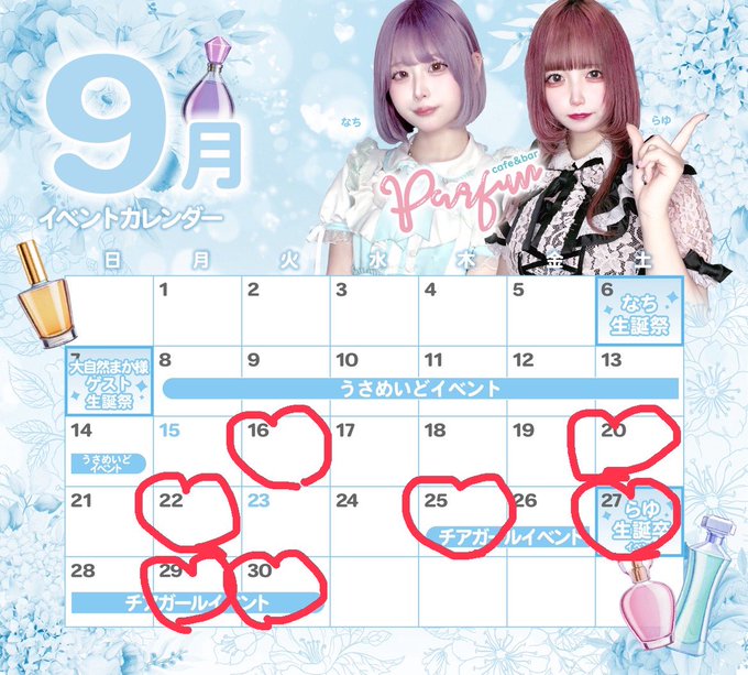 固定しゅう@PARFUN@syuu_parfun·9月後半お給仕予定です🦴 《9/27 らゆさん生誕卒𖤐 ̖́-》 あっという間に9月後半🥱🍁 後半も沢山楽しもうね〜〜〜153
