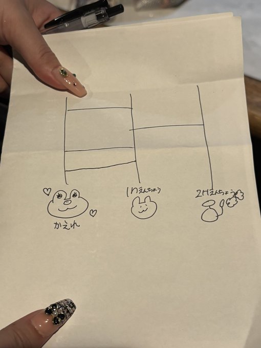 ひなぴよ田中㌠🩵さんがリポストスバル✝️妖狐煙屋蓮華@subaru_renka·延長するか否かの運命を決めるあみだくじ(ひなさんの書いた棒にわたしが無駄な棒を付け足して2/3が"帰れ"になってしまった)110326