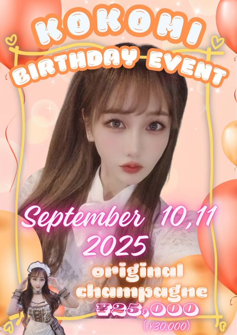 おと🌟えんまさんがリポストえんま🪽名古屋コンカフェ@ENMA_nagoya·9/10.11 Wed&Thu 🧡ここみんBirthday event 🧡 Open:19:00 ໒꒱໒꒱໒꒱ 来店特典オリジナルステッカー ここみんオリシャン🍾 数量限定birthday Tシャツ❣️ 2日間限定オリジナルカクテル🍹 期間限定シャンパン🥂 たくさんのオレンジでお祝いしましょう ꒰ঌ🧡໒꒱ ꒰ঌ🧡໒꒱ ꒰ঌ🧡໒꒱ここみ໒꒱えんま🧡9/10.11生誕祭11121,400