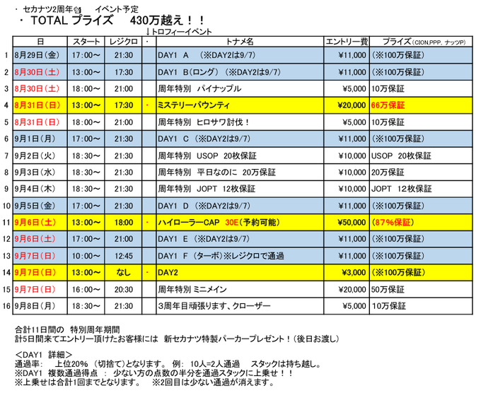 固定SECOND NUTS♧セカンドナッツ♤ポーカー♡名古屋 栄@SecondNutsPoker·🎊SECOND NUTS 2周年記念🎊 総額430万越え相当プライズの 特別トーナメント開催‼️ 🗓️8/29〜9/7(9月7日 DAY2) 🔥DAY1複数開催 → DAY2で決着!100万保証 🗓️8/30日(日) 🔥ミステリーバウンティ66万保証 🗓️9/6日(土) 🔥ハイローラー 30E CAP その他さらに表示22182.1万