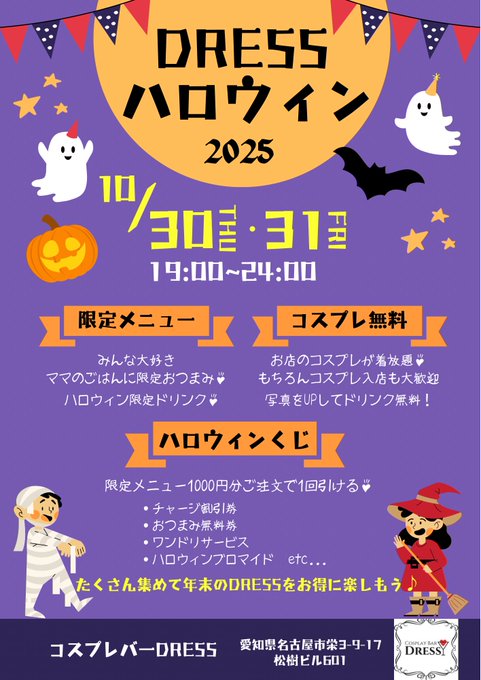 栄・大須・金山 コスプレバー DressDRESS ゆず🧸🍼@yz_dress·10月30日今日はこれ!引用コスプレバーDRESS@cosplaybardress·10月30日⭐️本日10/30(木)のスタッフ⭐️ 🩷ゆず 🤍あんず 【本日開催】 🎃#DRESSハロウィン2025🎃 👻限定メニュー公開4394
