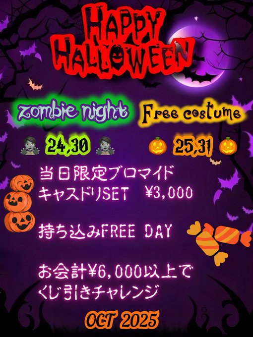 栄・大須・金山 コンセプトカフェ えんまえんま🪽名古屋コンカフェ@ENMA_nagoya·ハロウィン後半🎃🎃 本日!ゾンビ🧟♀️ ハロウィン限定ブロマイド当日限定です! なる@naru_enma つき@tuki_enma すわる@suwaru_enma はな@hana_enma22155