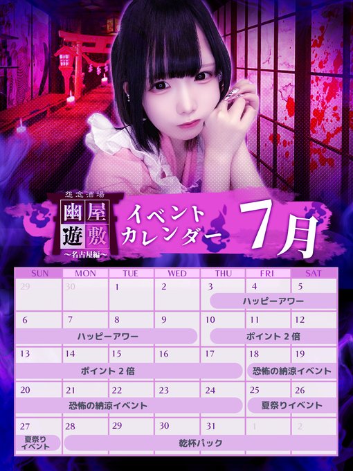 【コンカフェ】幽遊屋敷〜名古屋編〜@uuyashiki_ngy·【7月イベントカレンダー🎉】 幽遊屋敷7月イベント予定です♪ お楽しみに🌞 詳しくはコチラ👇 https://pokepara.jp/aichi/m201/a259/shop14412/event.html?month=202507… ※内容は変更となる場合がございます3188