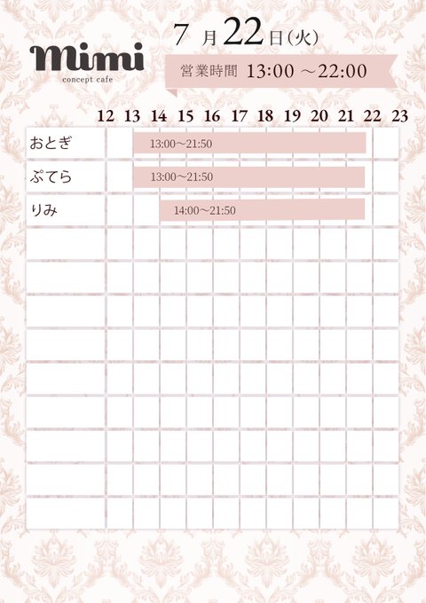 🔰るあ🍼Mimi@sas_rua8·3時間るあ19-22でいます!引用Mimi 隠れ家的大須コンカフェ@Mimi_bebe_·6時間♡ ••┈┈┈┈┈ Mimi ┈┈┈┈┈•• ♡ 🪞🩰07.22 お給仕表🩰🪞 ご主人様、お嬢様のご帰宅お待ちしております🖤 #名古屋コンカフェ #大須コンカフェ #コンカフェ #Mimiお給仕表 #隠れ家3269