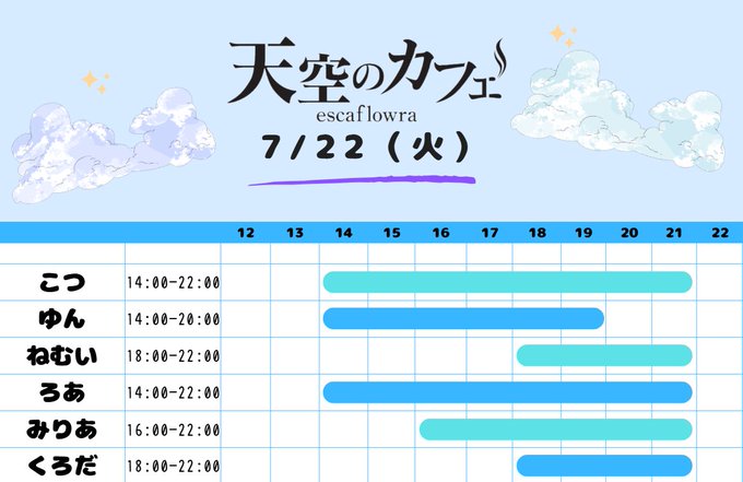 ⛅️天空のカフェエスカフローラ 名古屋大須のコンカフェ@escaflowra·⛅️(火)のお給仕表⛅️ 本日14時オープンです❣️ こつ 14:00~22:00 @co_escaflowra ゆん 14:00~20:00 @yun_escaflowra ねむい 18:00~22:00 @nemu_escaflowra ろあ 14:00~22:00 @roa_escaflowra みりあ 16:00~22:00 @miri_escaflowra くろだ 18:00~22:00 @krd_escaflowraさらに表示241,059