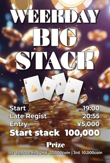 栄・大須・金山 Good Game Poker Live Nagoya【名古屋GGPL】 GoodGame Poker Live NAGOYA@GGPLnagoya·12/16(火)GGPLNAGOYA オープンしました✨ ▼17:00【Speed Racer 1k】 参加費:1,000円 レイトレジスト:18:10 ▼19:00【Big Stack】 参加費:5,000円 レイトレジスト:20:55 スタートスタック:100,000点 ▼21:00【Dairy Night 2k 】 参加費:2,000円 レイトレジスト:22:00 詳細はこちら💁🏻♀️さらに表示0:18131