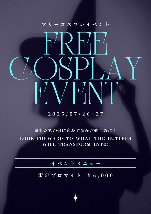 深瀬メルさんがリポストServant×Cafe🍽️名古屋メンズコンカフェ@Servant_Cafe_·🧙♀️フリーコスプレイベント🧙♀️ 日程:7/26(土)~27(月) 詳細:添付画像をご確認ください。 #名古屋 #メンコン #執事喫茶9134,083