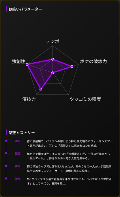 えん@C_Male_en·#M1架空コンビ選手権 わし「ベテランの客いじり師」か「最先端のパフォーマンスアート青年」どっちなんかな8347