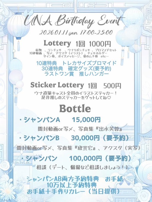 栄・大須・金山 カルティアちー🀄xaptia@chiii_xaptia·16時間皆大好きウナさんのバースデーイベントだ〜👏👏👏 盛大にお祝いしようね(ง°̀ロ°́)ง引用χαρτια-カルティア-🃏❤️キャスト募集中@xaptia_concafe·12月8日🦋💫告知 💫🦋 🗓2026.01.11.SUN ⏰17:00-25:00(L.O.24:30) ウナ BirthDay EVENT ▲ @una_xaptia 📍名古屋市中区栄4-8-18 コスモONOビルB1 カルティア オリシャンB・その他のボトル・くじ30連はご予約のみとなります。 ご予約は12/20〆切となります!さらに表示2162