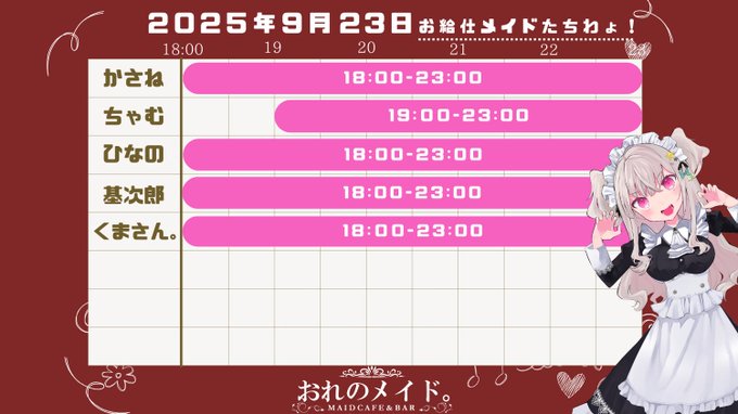 おれのメイド。@名古屋駅前メイドカフェ&BAR💫@orenomaid·オープンしました✨ 累@Kasane_oremei めぇ@mee_red_maid あこむ@acom_oremei ましろ@_mas1r くまさん@kumasan_oremei 時間未定 そちゃ@socha_oremei ご帰宅お待ちしております✨3305