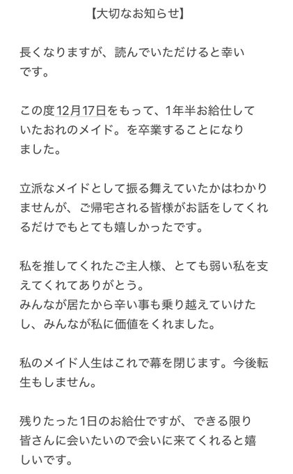 栄・大須・金山 おれのメイド。ひすいさんがリポストめぇ🐑@mee_red_maid·めぇから皆さんへご報告です2217341