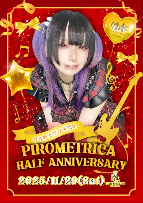 栄・大須・金山 メイドロックカフェ名古屋きる🥀@MAIDROCKCAFE@kill_mrc·11月29日今日はこれです!私は17時から出勤します!🦊❤️💜 みんなでぴろのハフバをお祝いしましょう㊗️🌹🌟 私のお目当てはぴろが描いたステッカーです!全メイドちゃんの欲しい(は?) 肉寿司も食べれたり、ライブの曲も好き曲多くてたのしみ🎶🎶 お前ら暴れる準備はできてるか〜〜⁉️⁉️⁉️🫵🏻🫵🏻🫵🏻引用メイドロックカフェ名古屋【公式🎸】@mrc__ngy·11月4日⚡️📡緊急発信📡⚡️ 11/29 【ぴろめとりか ハーフアニバーサリー 開催】 ぴろめ考案メニューやボトルなどご用意します! みんなで想い出を残しましょう♪ 沢山のオーディエンス様の ご入場お待ちしております🎸 🍲 FEEL THE ROCK 🍲3230