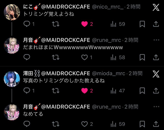 栄・大須・金山 メイドロックカフェ名古屋月音🎸@MAIDROCKCAFE@rune_mrc·リアルでもぼそぼそ言ってましたこいつら。1898