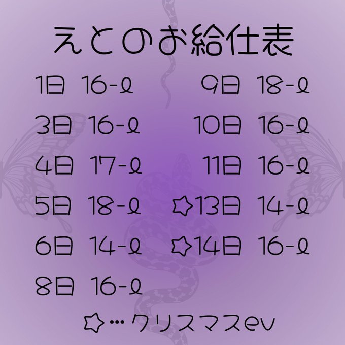栄・大須・金山 まいんずるーむ固定えと@まいんずるーむ@eto_mines·12月前半のお給仕予定です♡ いつも通りいっぱいいますよーん⸜( ˶'ᵕ'˶)⸝ 1日〜7日 まいんず1周年イベント! 一緒にお祝いだ( * ॑꒳ ॑* ) 13日〜15日 クリスマスイベ*↟⍋*↟ サンタさんにプレゼントもらわないとっ! 今年もあっという間! えとちゃんとの素敵な思い出まだまだ作るもんねっ♡115220