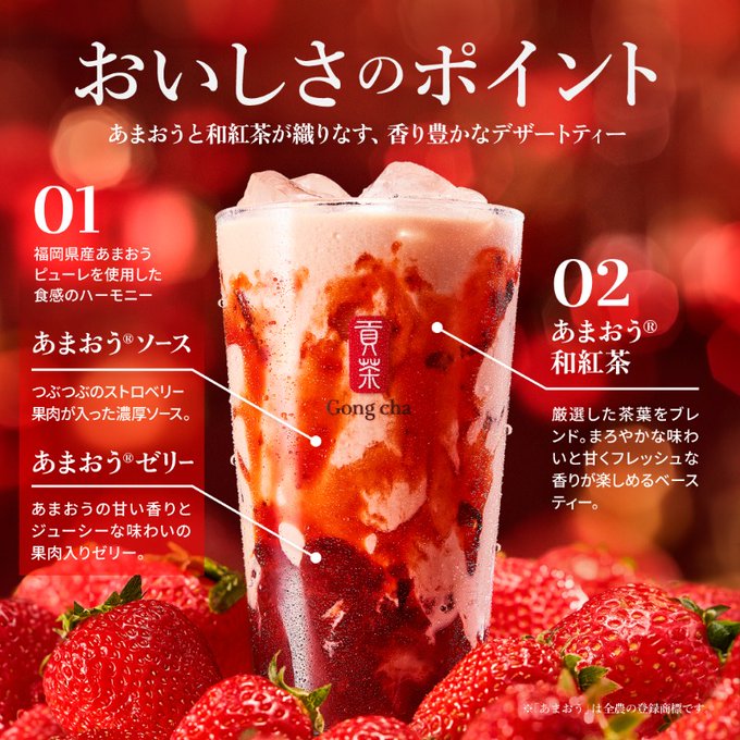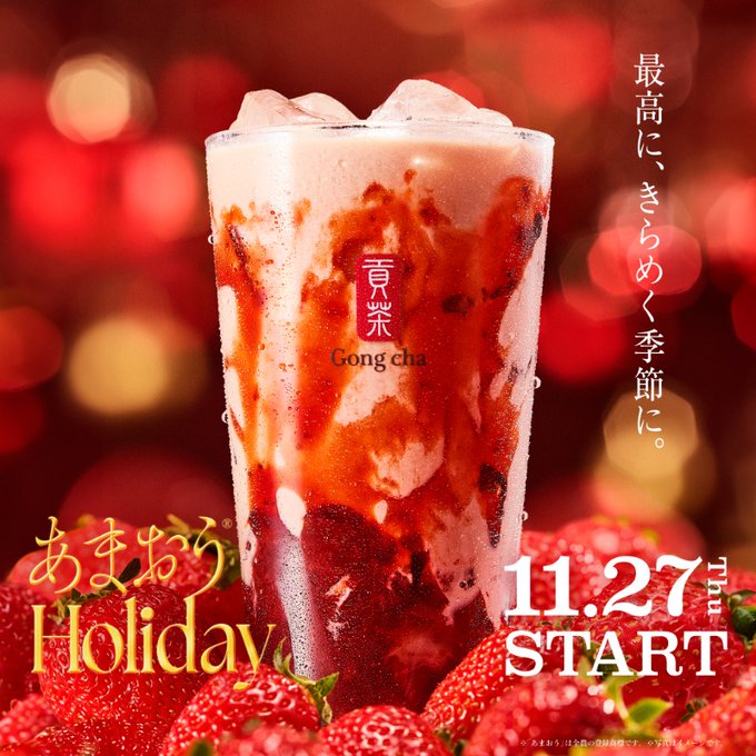 栄・大須・金山 カルティアちー🀄xaptiaさんがリポスト正方形のプロフィール画像Gong cha(貢茶 / ゴンチャ)@gongcha_japan·最高に、きらめく季節に✨ 11/27(木)【あまおう®︎ホリデー】が新登場🍓 あまおうの魅力を詰め込んだ 甘酸っぱくジューシーなデザートティー🍹 さらに! ホリデー限定のカップシールや 期間限定フード「いちご フィナンシェ」も登場❤️ ドリンクと一緒に頼んで、 ”いちご尽くし”を楽しまない?🍓スライド1/4 - カルーセル[新作] 最高に、きらめく季節に。「あまおう®︎ホリデー」[新作] 最高に、きらめく季節に。「あまおう®︎ホリデー」gongcha.co.jpから223,4657,881486万