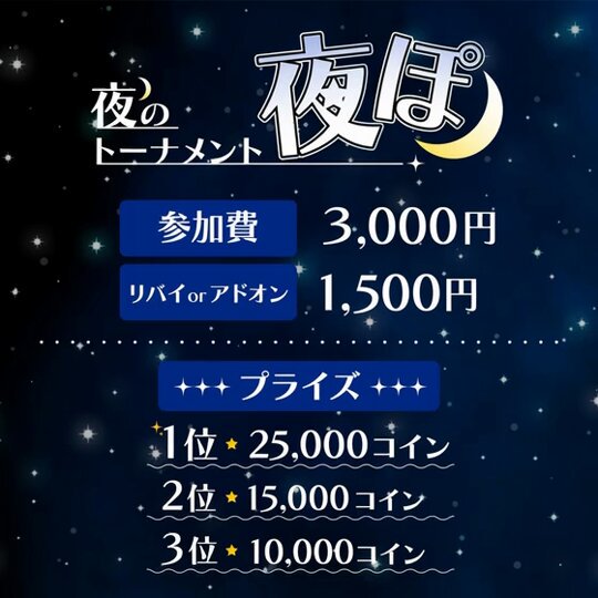 栄・大須・金山 ナゴヤギルドナゴヤギルド 名古屋 ポーカー@AGNagoyaguild·本日19:00からは 🍒夜のトーナメント『夜ぽ』🍒 上位3名の方はコインGET❗️ 初心者の方でも参加しやすいトーナメントです☺️ 💡詳細💡 レイトレジスト 20:40 参加費 3,000円 リバイorアドオン 1,500円 #ポーカー #トーナメント #名古屋 #名駅0:06 Grokでオリジナルバージョンを作成1267