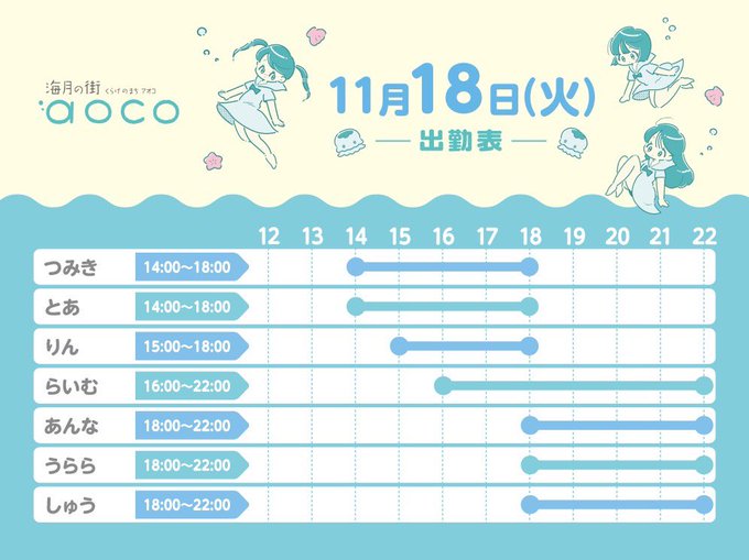 栄・大須・金山 海月の街aoco海月の街aoco ଳ@aoco_osu·海月の街aoco 14時オープン🪼 とあちゃんお休みです、ご了承下さい。 みなさまのご来店お待ちしておりますଳ #コンカフェ #大須 #クラゲ #名古屋15497