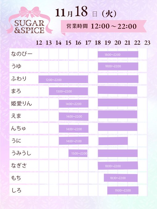 栄・大須・金山 SUGAR&SPICEふわり🐇SUGAR&SPICEさんがリポストSUGAR & SPICE 大須コンカフェ シュガスパ@sugar_spice_osu·. .°ʚ SUGAR&SPICE ɞ°. 👑11.18 お給仕表👑 🩷なのぴーさん🩷 🩵u_uさん🩵 ゲストイベント❕ ご主人様、お嬢様のご帰宅お待ちしております💝 #SaSお給仕表さらに表示27205,800