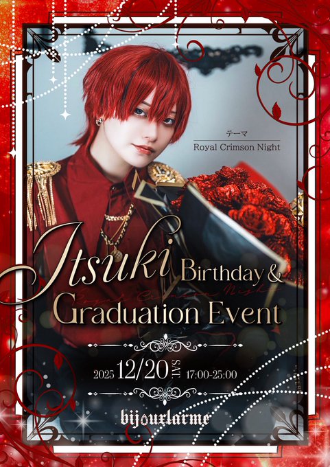 栄・大須・金山 ビジュラム 名古屋店園祇🧬@ビジュラム名古屋@bjlmngy_sonogi·11月16日😿🙅引用ビジュラム💍公式総合アカウント@bjlm_info·11月16日‧✧̣̥̇‧✦12/20いつき 生誕祭&卒業式✦‧✧̣̥̇‧ -名古屋店- 名古屋店オープン当初から約3年支えてくれたいつきの卒業が遂に開催決定となりました🌙 沢山の感謝を伝えられますように✧︎*。 皆様のご入国をお待ちしております🥀 テーマ:Royal Crimson Night 開催日時:2025/12/20 17:00-25:0017262