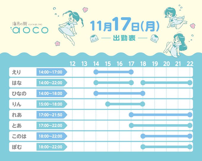栄・大須・金山 海月の街aoco海月の街aoco ଳ@aoco_osu·海月の街aoco 14時オープン🪼 えりちゃんお休みです、ご了承ください。 みなさまのご来店お待ちしておりますଳ #コンカフェ #大須 #クラゲ #名古屋3412