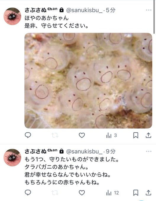 栄・大須・金山 コンセプトバー アリュールさぬき🐈⬛Allure@sanuki_Allure·今の情緒これだからね もう全部守ろうとしてる ちなみに守るよ タラバあかさんもうにあかさんもほやあかさんもみんな守るからねSDGsエコバッ持ち歩いてなるべくプラスチックを出さない生活心がけるね毎朝ゴミ拾いにでも行こうかなこうゆう小さなことで救えるあかさんたちもいるんだよね。110270