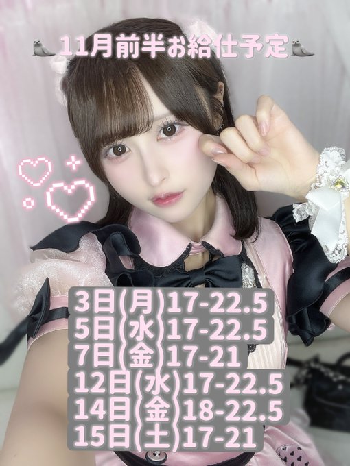もえか🐈⬛@ PARFUN@moeka_parfun·11月15日本日15日は17-24までいます!✨ はやめの時間独占できるよっ!あいたいです引用もえか🐈⬛@ PARFUN@moeka_parfun·11月1日11月前半お給仕予定はこちらです♡ 2万円以上のボトルで 24:00まで一緒に居られます^ᴗ ̫ ᴗ^♡ #もえにゃんお給仕予定🐈⬛7522