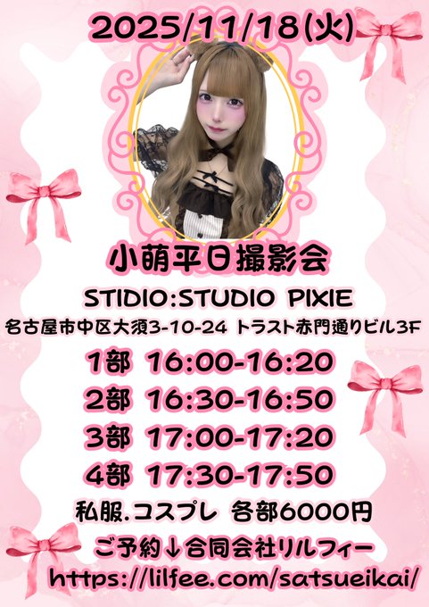 栄・大須・金山 CAFE&PHOTOSTUDIO PIXIE小萌@omikuyusuki·11月12日あと2部まってます🤩私服かーもうツリーがあったからーサンター引用合同会社リルフィー@lilfeelilfee·11月7日紅葉シーズン🍁2025/11/18(火) 小萌ちゃん出演します❣️ スタジオはCAFE &PHOTOSTUDIO PIXIE❣️いろんなシチュエーションで撮影できちゃいます❣️ 可愛い小萌ちゃんとご一緒に撮影楽しみましょん! さっそくご予約スタートしましたぁ❣️ ご予約はこちら↓↓ https://lilfee.com/satsueikai/ お待ちしています❣️1142,789