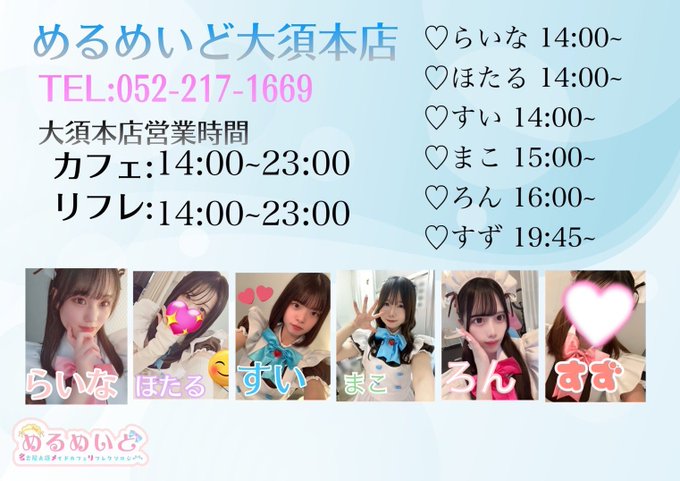 栄・大須・金山 めるめいどらいな🐧めるめいど@mellmaidraina·13時間明日は14時から本店にてお給仕です🙇🫶🏻 ご帰宅,ご予約お待ちしております✨ 空き枠夕方までです🤍引用めるめいど【名古屋大須メイドカフェ/リフレクソロジー】@mellmaid·13時間11月13日(木) 大須本店→14時から ご案内できます💕 【営業時間】 ⭐️大須本店カフェ→14時~23時 ⭐️大須本店リフレ→14時~23時 リフレのご予約は→ 本店☎️ 052 217 1669 12時~ らいな @mellmaidraina ほたる @mellmaidhotaru すい @mellmaidsui まこ @mellmaidmako ろん @mellmaidron すずさらに表示このポストには新しいバージョンがあります11123