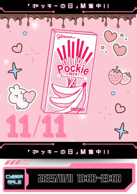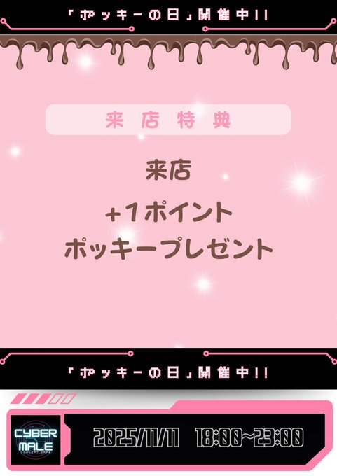時雨@名古屋メンコン@C_Male_Shigure·3時間次の出勤ポッキーでした!やっぴー🎶引用🌐Cyber_Male🔊名古屋大須メンズコンカフェ@Cyber_Male_·11月5日【❣️ポッキーの日イベント❣️】 期間:11/11 特典:来店時にポッキープレゼント +ポイント1 #メンコン #大須 #コンカフェ #名古屋 #メンズコンカフェ #サイバーメールで接続完了295