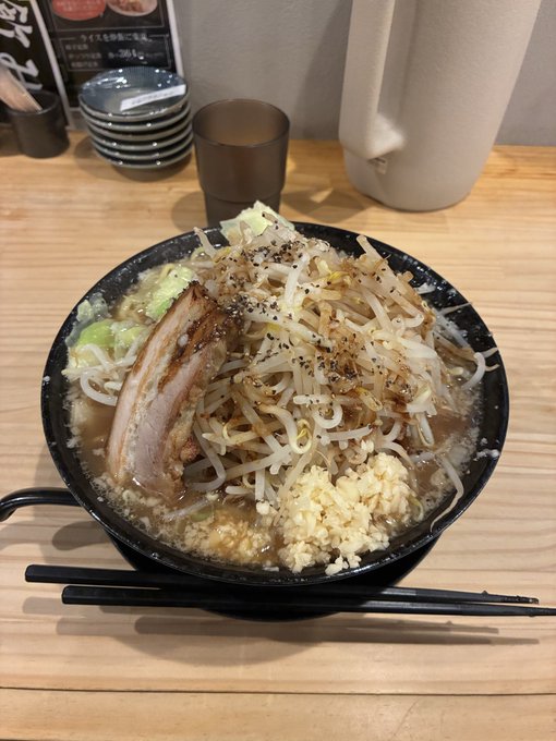 ゆんゆん@C_Male_yunyun·めっちゃドでかいゾ..... お腹がうんといっぱいになる程食べました。 ゆんゆんはとても御満悦😋 美味しいラーメン屋さんあったら教えてくれよナ!!食べ行くゼ!! #ゆんゆんの外食日記🍽️7114