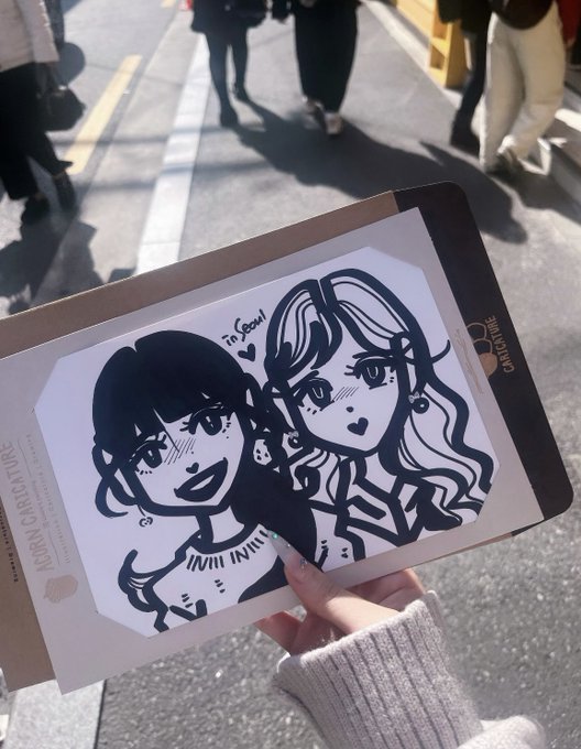 栄・大須・金山 CAFE&PHOTOSTUDIO PIXIE小萌@omikuyusuki·韓国で描いてもらった似顔絵可愛すぎる(৹ᵒ̴̶̷᷄ ᴗ ᵒ̴̶̷᷅৹)2人で1500円くらい!👼🏼♥️6261,4446.8万