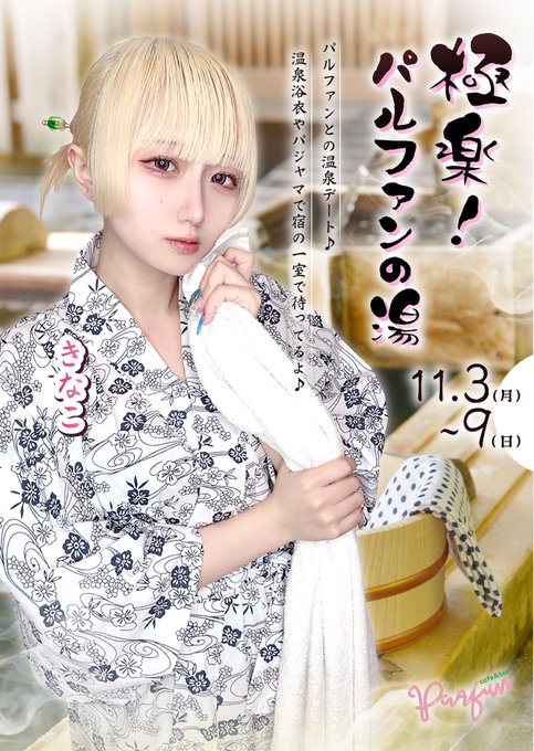 もな@PARFUN@mona_parfun·5時間7日しかこのイベントいないけど! 18時までにご来店の予定いただけたら冬仕様もこもこパジャマまたは浴衣着ます❕ イベントのねグッズみんな言ってるけどとても可愛いので是非だよ(ง ˙˘˙ )ว🎶引用パルファン💐名古屋コンカフェ@parfun_nagoya·11月4日♨️✨極楽!パルファンの湯✨♨️ 11/3(月)〜9(日)開催中💐 パルファンの温泉宿へようこそ♪ キャストたちが浴衣やパジャマ姿でお出迎え👘💕 まるで一緒に温泉旅行に来たみたい…♨️ 限定フード&ドリンクや、可愛いグッズが盛り沢山✨ お宿のご予約無しでもお越しいただけます🎵73