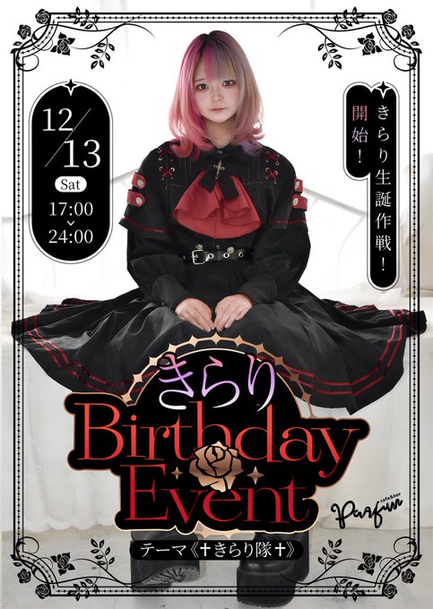 しゅう@PARFUNさんがリポストパルファン💐名古屋コンカフェ@parfun_nagoya·*.·┈┈┈┈*.·┈┈┈┈*.·┈┈┈┈*.·┈┈┈┈ 🎀🖤 きらり生誕作戦、開幕!🖤🎀 12/13(土) 17:00〜24:00 テーマ《+きらり隊+》 きらり隊の生誕祭が開始🎂 特別衣装・限定メニュー・限定グッズも…!🌹 きらり隊、全員集合せよ⚔️✨ *.·┈┈┈┈*.·┈┈┈┈*.·┈┈┈┈*.·┈┈┈┈612624