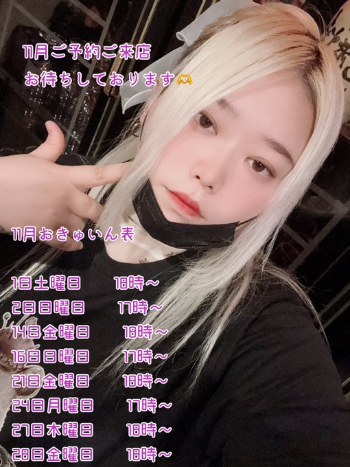 栄・大須・金山 わんわんカフェバー名前はまだない@tasotyndayo·11月の㌠おきゅいん表なりよろしくお願いします#いいねした人全員フォローする #自撮り界隈 #美男美女さんと繋がりたい #いいね返し #RT希望 #RTで私を布教してください #コンカフェ #コンカフェ嬢 #名古屋 #カラオケバー #コンカフェ営業17231