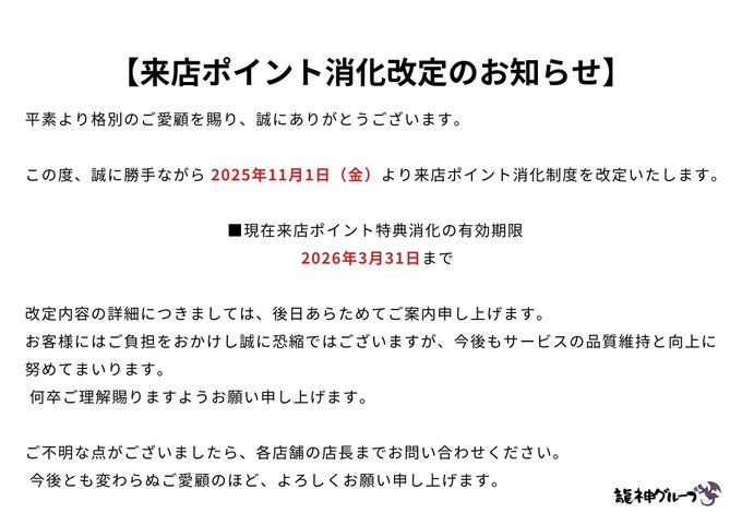 骸✝️名古屋メンコンさんがリポスト龍神グループ【名古屋メンズコンカフェグループ】@Ryujin_Group·【来店ポイント消化改定のお知らせ】21233,708