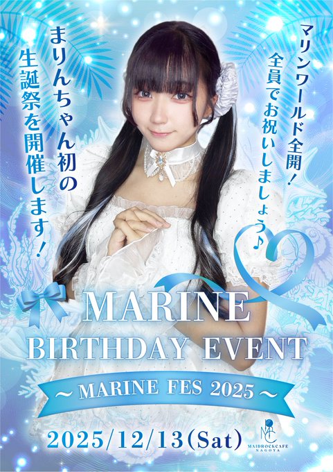 栄・大須・金山 メイドロックカフェ名古屋すぴか🎸@MAIDROCKCAFE@spica_mrc·10月15日ネキネキネキ🩵ྀི🐬🐳💎❄️💍引用メイドロックカフェ名古屋【公式🎸】@mrc__ngy·10月14日⚡️📡緊急発信📡⚡️ 12/13【🩵まりんBIRTHDAY EVENT🎂】 まりんちゃん(@marine_mrc_)初の 生誕祭を開催します! マリンワールド全開の特別な空間で ぜひ一緒にお祝いしましょう!💙🫧 #MRC #MRC名古屋7329