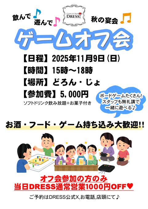 栄・大須・金山 コスプレバー DressDRESSゆま🐈⬛🍊さんがリポストコスプレバーDRESS@cosplaybardress·⭐️本日10/14(火)のスタッフ⭐️ 🩷ゆず #本日のDRESS ●イベント情報● #ゆまBDEV2025 #DRESSゲームオフ会13356