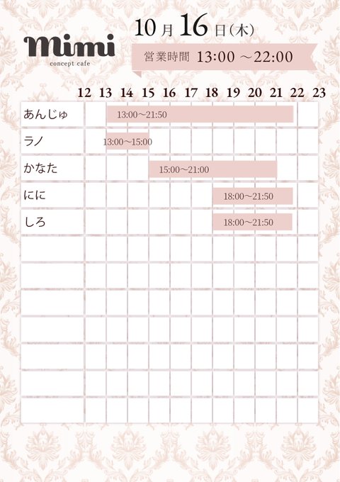 栄・大須・金山 コンセプトカフェ なでしこもちの🍡なでしこ@mochino_ndsc·10月14日19日‼️12-18‼️いる‼️ 先週~今週製作ド修羅場で全然浮上してなくてごめん(ˆ꜆ . ̫ . ) もう復活したけど実は先週急性胃腸炎になってたりした^-^引用大須 コンカフェ なでしこ キャスト大募集中‼️@nadeshico223·10月11日。.。:+* ゚ ゜゚ *+:。.。:+* ゚ ゜゚ *+:。.。.。:+* 付喪神ちゃんの週間予定表です♩ お気に入りのキャストちゃんの出勤日をチェックしてみてください♫ 。.。:+* ゚ ゜゚ *+:。.。:+* ゚ ゜゚ *+:。.。.。:+* #名古屋 #大須 #コンカフェ4404