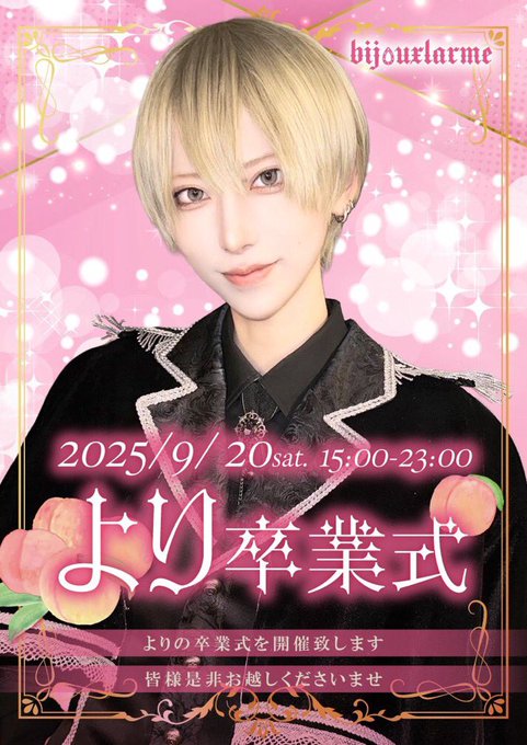 より🍑0920@ビジュラム名古屋@bjlmngy_yori·ぼくの卒業式です!!!🍑 15-23です!!! みな来てくれたら嬉しい🫶🫶5392,617