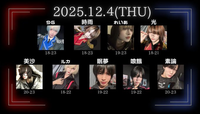 ルカ@C_Male_luka·6時間本日います❕引用🌐Cyber_Male🔊名古屋大須メンズコンカフェ@Cyber_Male_·19時間12/4(木)のログインメイド- @C_Male_96 @C_Male_Shigure @C_Male_reia @C_Male_hikari @C_Male_Misa @C_Male_luka @C_Male_nemu @C_Male_kuga @C_Male_soron #名古屋 #メンズコンカフェ #メンコン3124