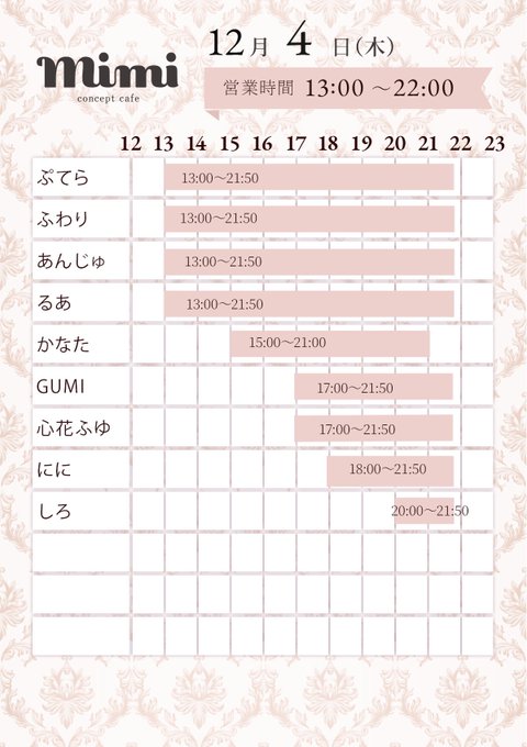 栄・大須・金山 おれのメイド。固定もち@mochi_oremei·‼️12がつ会える日‼️ 5日 18~22.5 6日 18~22.5 あすみさん生誕&卒業EV 8日 18~22.5 10日 18~22.5 15日 18~22.5 16日 18~22.5 22日18~22.5 27日 18~22 ことりさん生誕EV あえますかーーまってるね(ᐢᴖ ·̫ ᴖᐢ)☃️❄️467