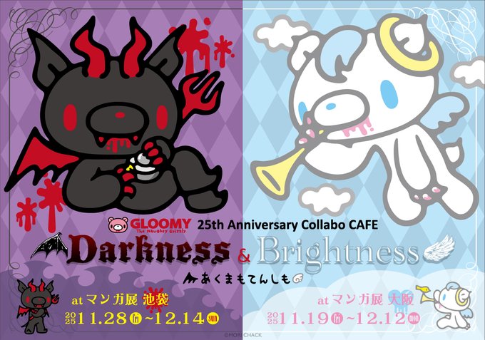 栄・大須・金山 メイドロックカフェ名古屋とげまるてぃぶ@MAIDROCKCAFE@togemaru_mrc·18時間やばい引用【公式】いたずらぐまのグルーミー@official_gloomy·11月4日/ コラボカフェ開催決定📢‼️ GLOOMY 25th Anniversary Collab CAFE 『Darkness & Brightness -あくまもてんしも-』 \ グルーミーが「悪魔&天使」姿になって登場😈👼 描き下ろしイラストを使用した展示や ここでしか手に入らないオリジナルグッズの販売、 コラボメニューも登場予定✨ さらに!さらに表示1159