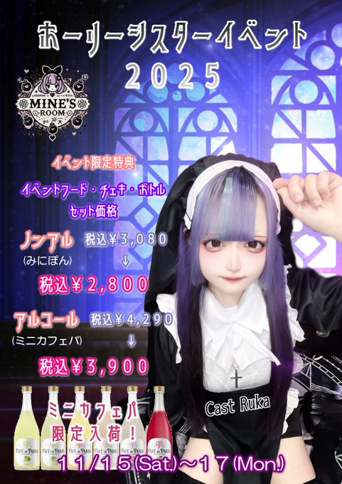 栄・大須・金山 まいんずるーむ縛@まいんずるーむ@baku_mines·11月4日シスター❕シスター❕シスター❕シスター❕シスター❕シスター❕シスター❕引用まいんずるーむ【公式】地雷系コンカフェ🍾キャスト募集中@mines_room·11月4日11月のイベントです📣 8日私服デー🎀 15〜17日ホーリーシスターイベント⛪️ シスターイベントはフード、チェキ、ミニボトルのセットでお得になります🉐 ぜひご期待ください🙌🏻 @Ruka_mines #コンカフェ #大須 #名古屋 #まいるー #地雷系 #量産型 #シスター #イベント31221,121