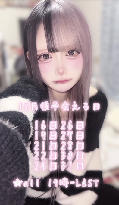 ミナミ🍒ྀི@PARFUN@minami_parfun·12月後半会える日💍 - - - - - ꒰ ♡ ꒱ - - - - - 沢山会えますよーჱ̒՞ ̳ᴗ ̫ ᴗ ̳՞꒱ イベント等またのせますo̴̶̷̤ ̫ o̴̶̷̤ リクエスト🉑❕です❕DMください📨♡ #大須コンカフェ242