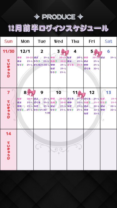 京都 PRODUCE固定ゆゆ@PRODUCE__yuyu·🎀𝕊𝕔𝕙𝕖𝕕𝕦𝕝𝕖🎀 .⋆𝜗𝜚 ┈┈┈ ⋯ ┈┈┈ 𝜗𝜚 ┈┈┈ ⋯ ┈┈┈𝜗𝜚.⋆ 3日(水),8日(月),11日(木) : 21-L 5日(金) : 21-1 .⋆𝜗𝜚 ┈┈┈ ⋯ ┈┈┈ 𝜗𝜚 ┈┈┈ ⋯ ┈┈┈𝜗𝜚.⋆ ※ 5日(金)はラストまでいないです >
