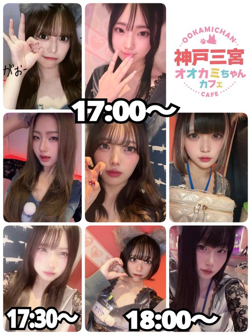 オオカミちゃんカフェ神戸三宮店@ookamichancafe·9月27日(土) 本日出勤のオオカミちゃん🐺 17:00~ 💛べる💛もも 💛まき💛りりあ 💛ここみ 17:30~ 💛れい 18:00~ 💛なみ💛ありあ 💛なる💛きらら 💛さくら 19:00~ 💛じう💛みるく 💛めあ💛ゆうあ 💛ねる💛めい #オオカミちゃんカフェ #神戸 #三宮 #三ノ宮 #関西コンカフェ #コンカフェ #ガルバ810