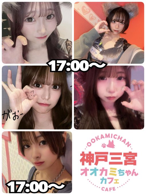 オオカミちゃんカフェ神戸三宮店@ookamichancafe·(日) 本日出勤のオオカミちゃん🐺 17:00~ 💛ありあ💛もも 💛ここみ💛みゆ 💛きらら 18:00~ 💛ゆうあ💛らい 💛めあ 19:00~ 💛なる💛きぬ 💛みるく💛ねる #オオカミちゃんカフェ #神戸 #三宮 #三ノ宮 #関西コンカフェ #コンカフェ3219