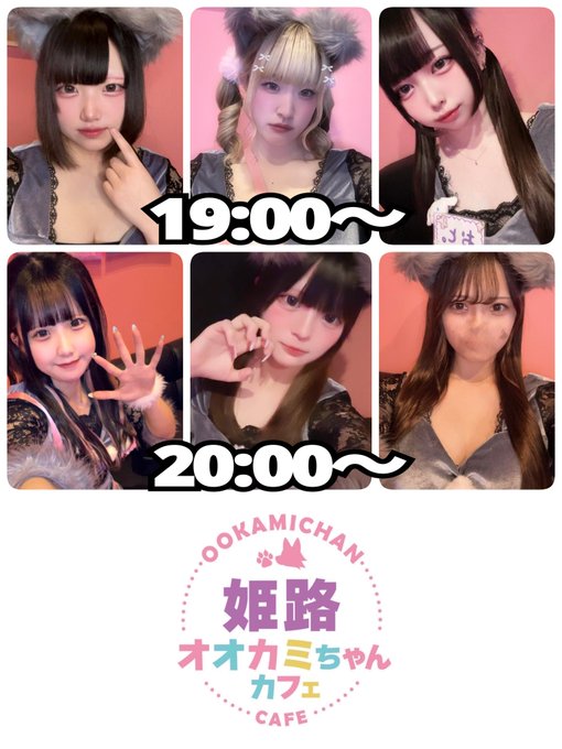 オオカミちゃんカフェ姫路店@ookami_himeji4·(日) 🐺本日の出勤情報🐺 19:00~ 🩶ろん🩶りん 🩶まどか🩶ちい 20:00~ 🩶ねむ🩶しお 🩶ゆな #オオカミちゃんカフェ #姫路 #関西コンカフェ #姫路コンカフェ #姫路ガールズバー #コンカフェ1166