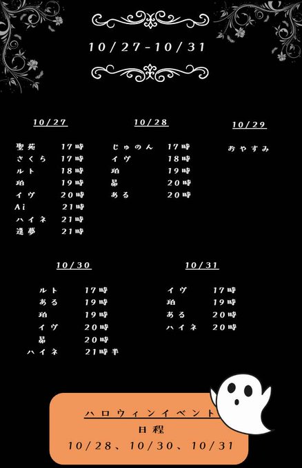 京都 カフェドアイ京都コンカフェ Cafe de Ai@Cafe_de_Ai·11月前半シフトです! 1日はハロウィンイベント最終日です🎃 ご帰宅お待ちしてます!36
